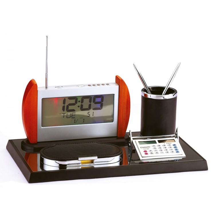 Настольный прибор Монреаль: часы, радио, калькулятор, подставка под ручки, бумажный блок