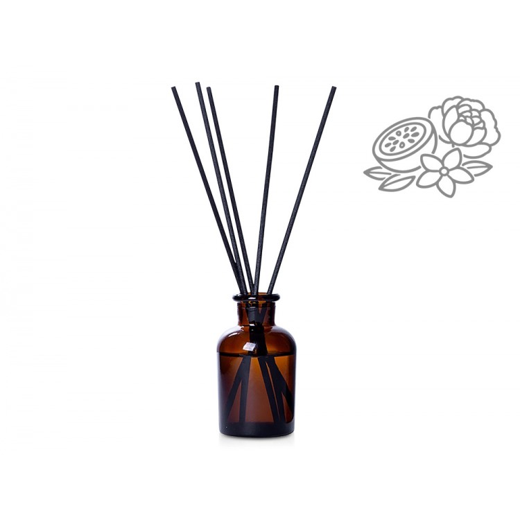 Объём диффузора 50 мл. Его будет достаточно для умеренного поддержания аромата в комнате до 15м2 в течение двух месяцев использования. Насыщенность аромата регулируется количеством используемых фибровых палочек.