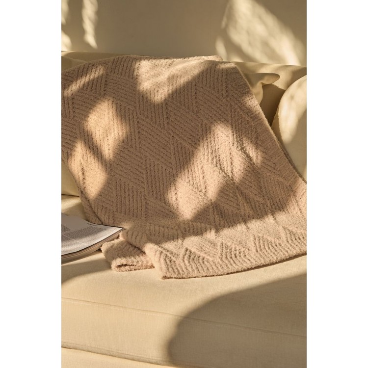 Изделие завораживает с первого взгляда: рельефный узор дарит пледу выразительность и премиальный вид. Плотная, увесистая структура материала мягко обволакивает и приятной тяжестью ощущается на теле.