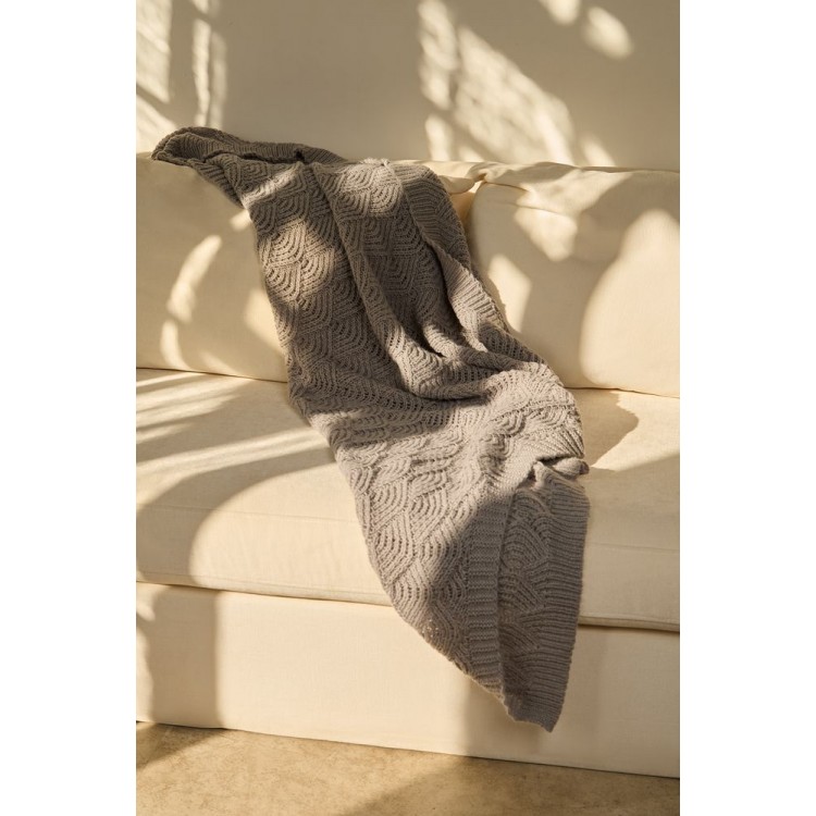 Изысканный воздушный плед с утонченным узором из закругленных ромбов станет настоящим украшением пространства. Словно полупрозрачный узор создает напоминает морские ракушки, навевая мысли о приятном курортном отдыхе и полной безмятежности.