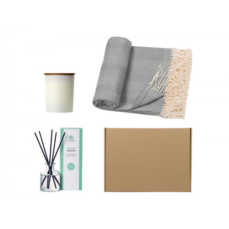 - Код товара: Подарочный набор с пледом, свечой и диффузором, серый