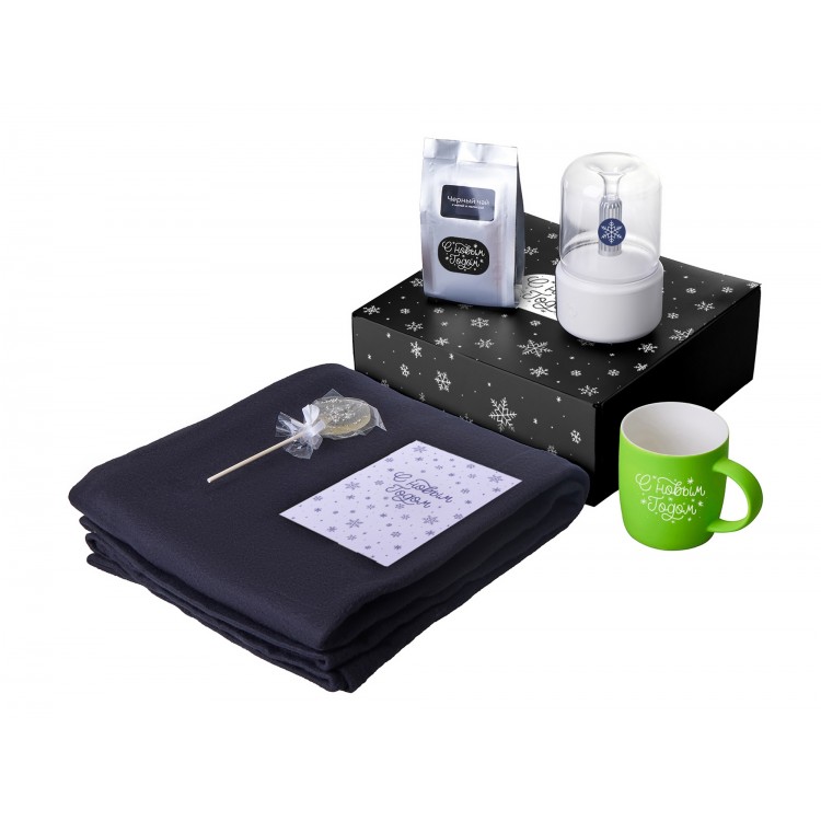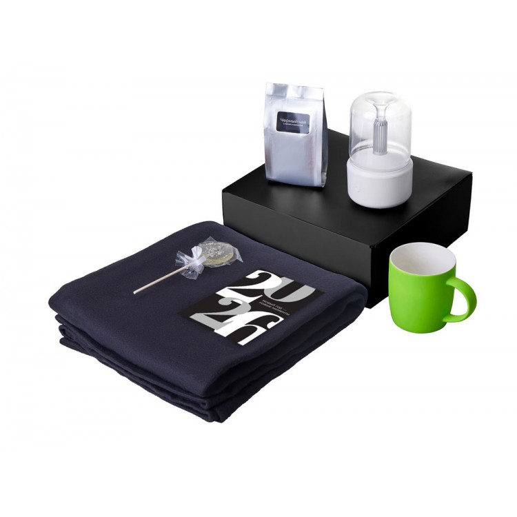 - Код товара: Подарочный набор с пледом, увлажнителем и кружкой, зеленое яблок
