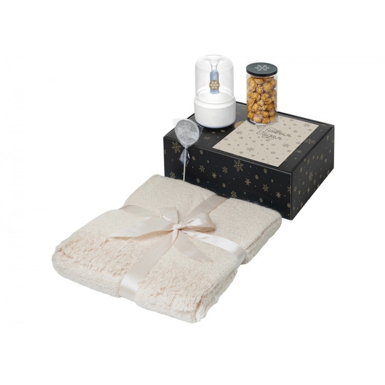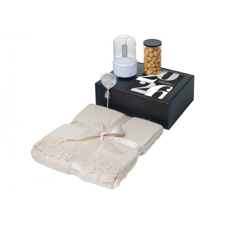 - Код товара: Подарочный набор с пледом, увлажнителем и попкорном, бежевый