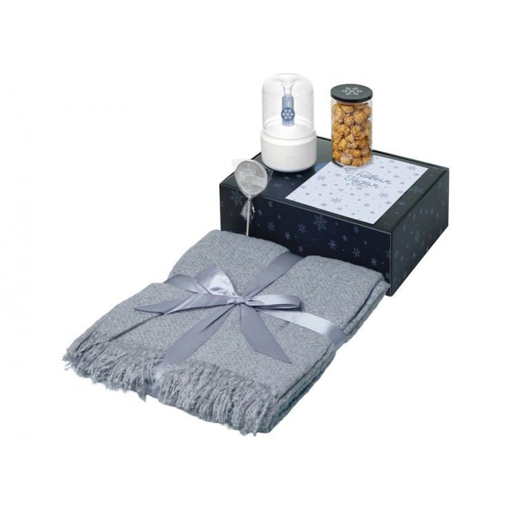 - Код товара: Подарочный набор с пледом, увлажнителем и попкорном, серый