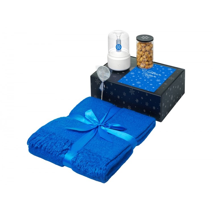 - Код товара: Подарочный набор с пледом, увлажнителем и попкорном, синий