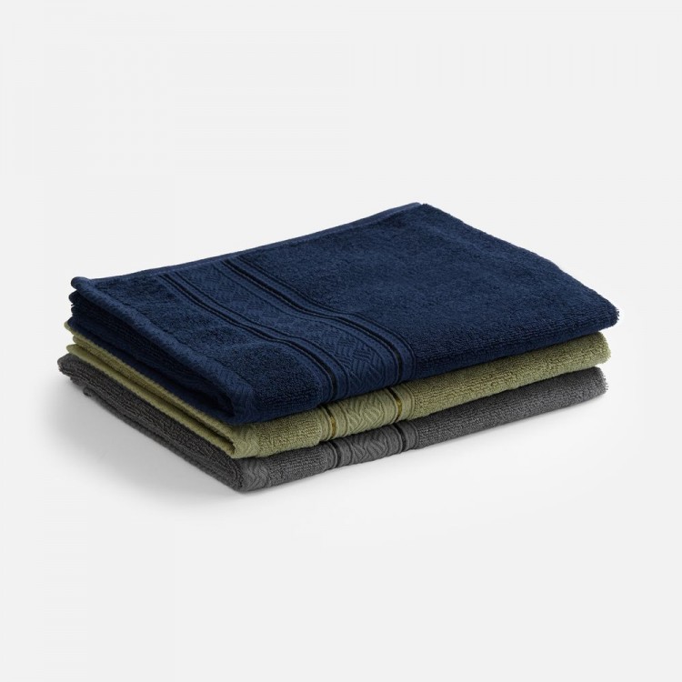 Темные приглушенные оттенки и полоса с орнаментом в классическом стиле делают это полотенце элегантным и функциональным аксессуаром в ванной комнате.