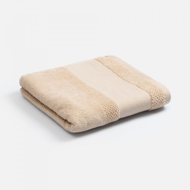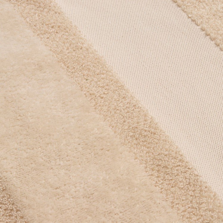 Пышная рельефная структура создает эффект роскошного спа-ухода и быстро впитывает влагу благодаря расположенным пучками петлям, а изящная полоса из стриженных петель с эффектом велюра добавляет элегантности. Практичный гладкий бордюр станет идеальным холстом для нанесения символики и позволит создать уникальный персональный подарок.