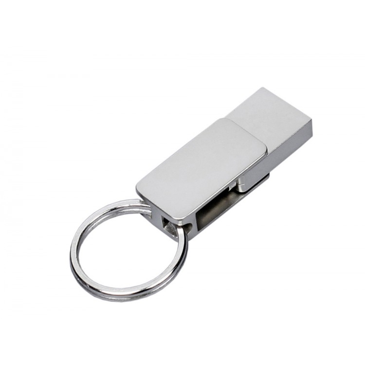 Флеш-накопитель поворотный механизм, c дополнительным разъемом TypeC, с одноцветным металлическим клипом., объем памяти 32 Гб. Металлический корпус.