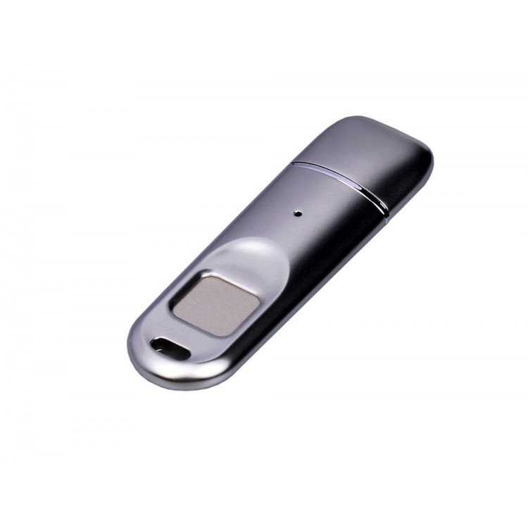 Классическая металлическая флешка с колпачком и сканером отпечатков пальцев.