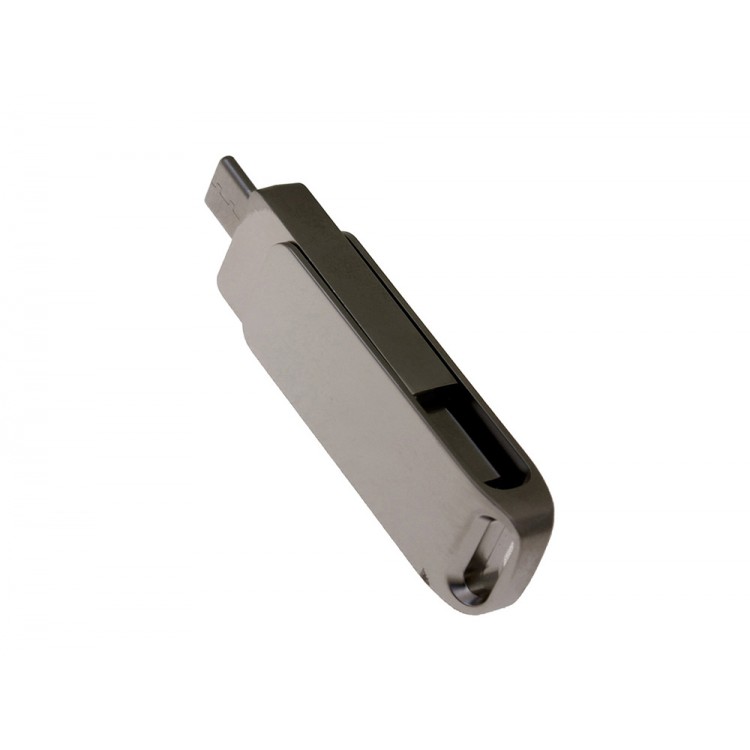 Флеш-накопитель поворотный механизм, c дополнительным разъемом Type-C с одноцветным металлическим клипом, объем памяти USB3 128 Гб. Металлический корпус.