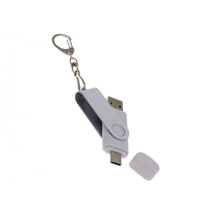 Флеш-накопитель 2 в 1 поворотный механизм, c дополнительным разъемом Type-C с одноцветным металлическим клипом, объем памяти 64 ГБ. Пластиковый корпус.