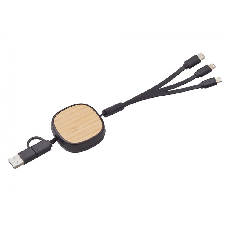 Универсальный кабель с ретрактором 3-в-1 Retrax — это стильное и практичное решение для зарядки и передачи данных на ходу. Компактный корпус из экологичного бамбукового покрытия сочетается с удобной системой автоматического складывания, что делает его идеальным спутником в путешествиях, на работе и в повседневной жизни. Кабель оснащён тремя разъёмами: USB-A, Micro-USB и Lightning, обеспечивая совместимость с широким спектром устройств — от смартфонов до планшетов и других гаджетов. Благодаря прочной конструкции и элегантному дизайну, Retrax станет незаменимым аксессуаром для тех, кто ценит функциональность и стиль. Поставляется в фирменной коробке bamboo collection.