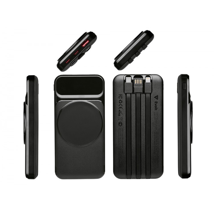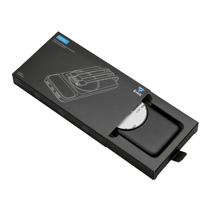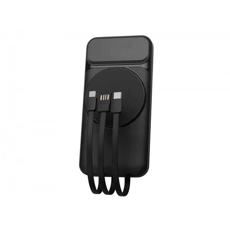Магнитный беспроводной внешний аккумулятор со встроенными кабелями Мэни,быстаря зарядка, 10000 мАч, черный