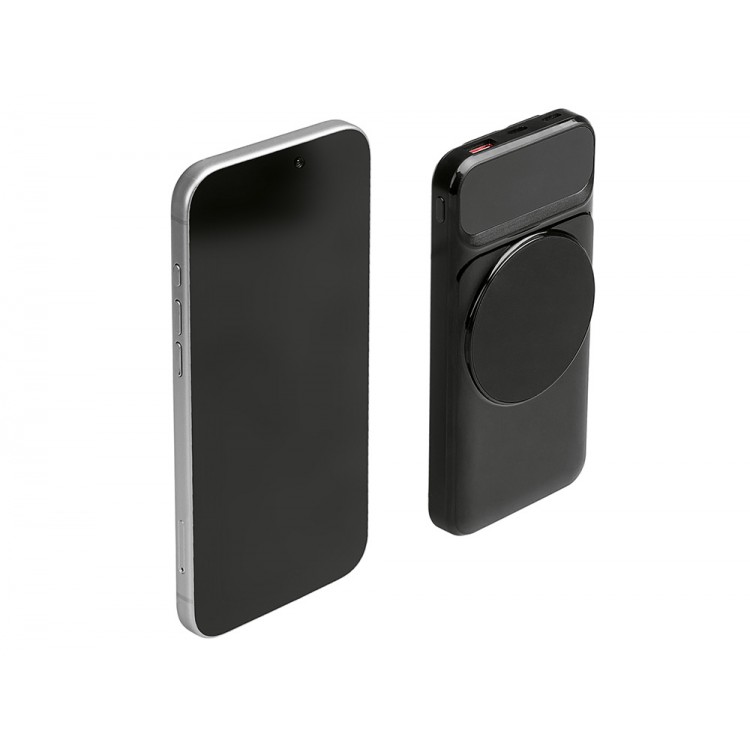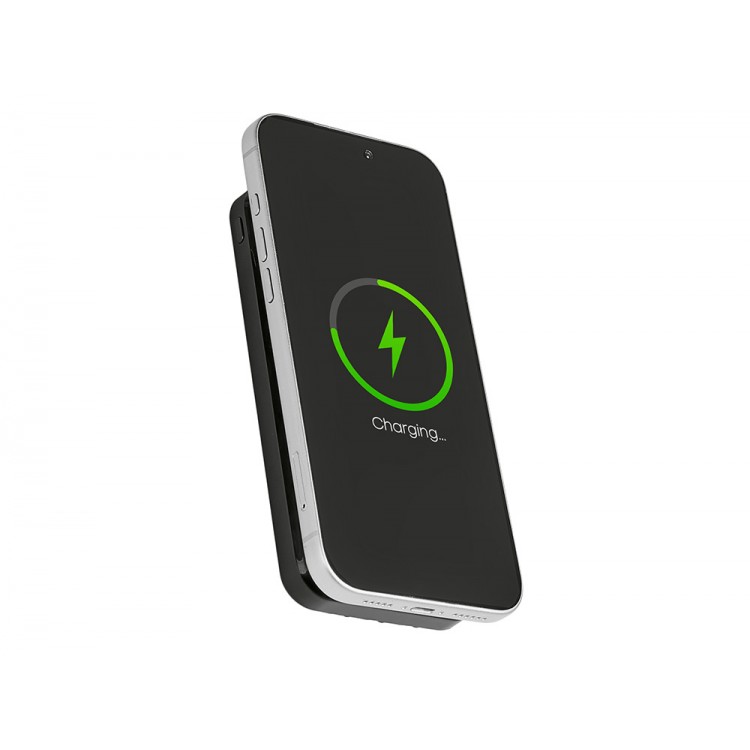Функциональный и удобный внешний аккумулятор на 10 000 мАч обеспечивает быструю зарядку как по кабелям, так и беспроводным способом, поддерживая современные стандарты скорости. Цифровой дисплей на верхней панели мгновенно показывает точный уровень заряда, а встроенные кабели Lightning, USB-C и входной USB-A устраняют необходимость в дополнительных проводах — всё, что нужно для каждодневного использования, уже есть в самом гаджете. Компактные габариты, сопоставимые с размером смартфона, делают устройство идеальным для путешествий и повседневного использования. Сильные магниты гарантируют надёжное крепление при беспроводной зарядке. В комплекте есть силиконовая накладка: перед использованием удалите защитный стикер и прикрепите её к корпусу.