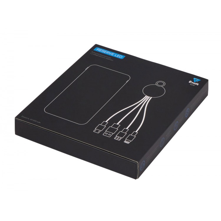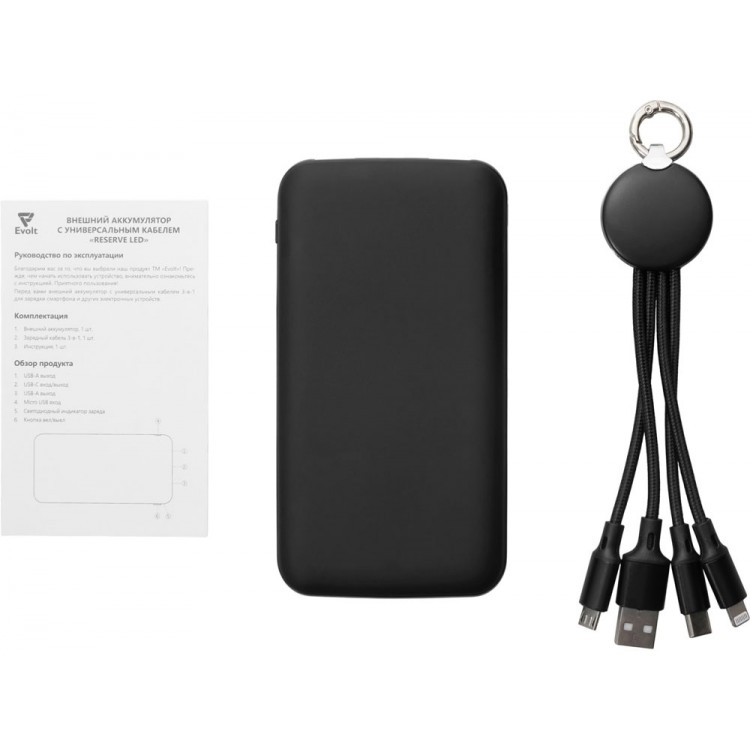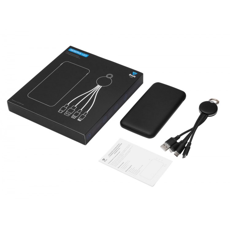 Набор из внешнего акуумулятора и универсального кабеля с подсветкой лого Reserve LED, 10000mAh, черный