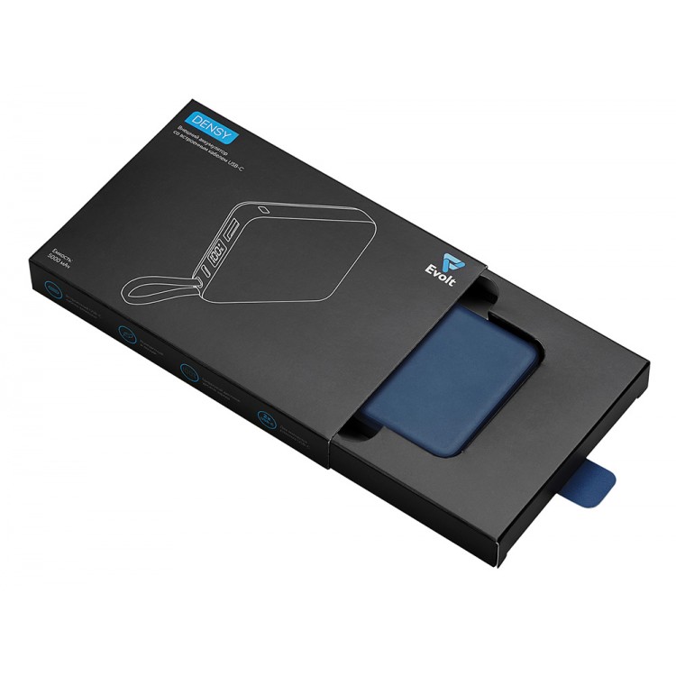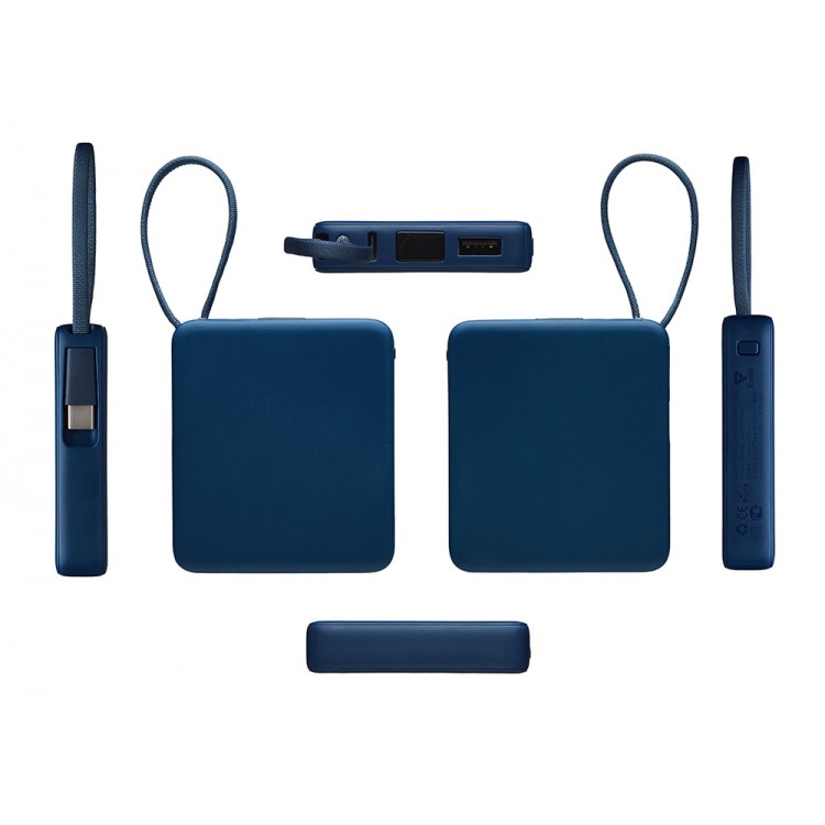 Внешний аккумулятор со встроенным кабелем USB-C Дэнси, 5000 мАч, темно-синий