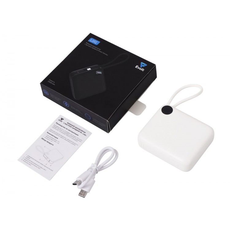 - Код товара: Внешний аккумулятор со встроенным кабелем Liri, QC/PD, 10000 мАч