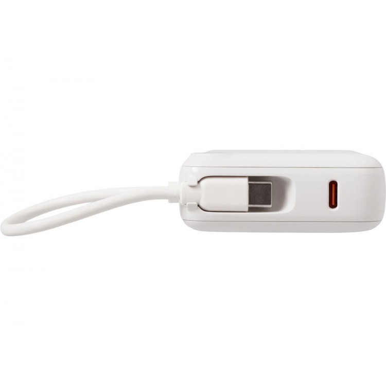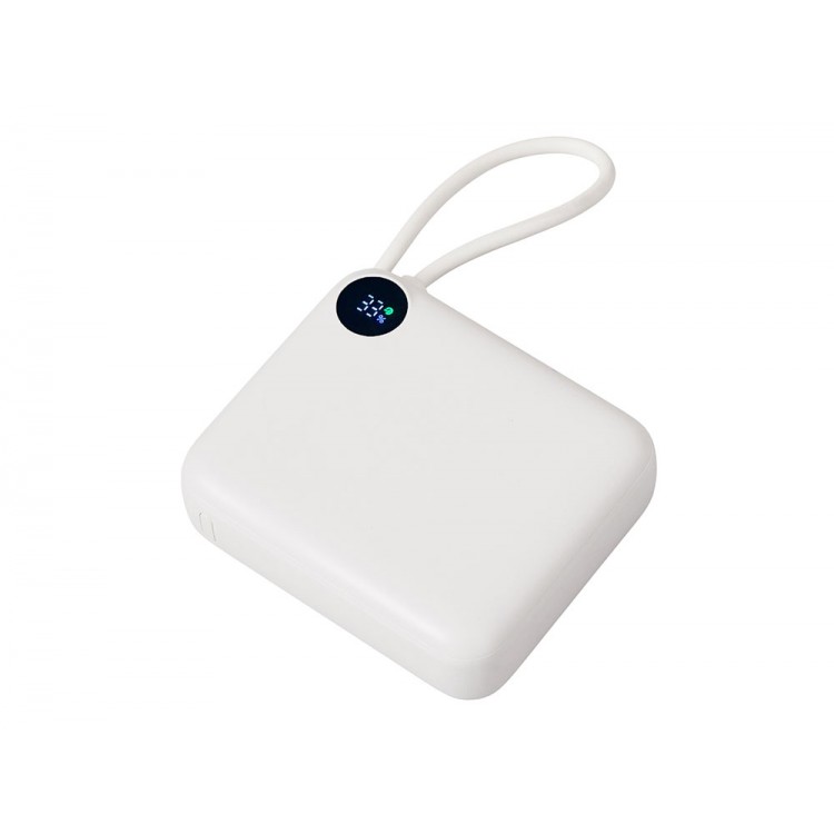 Внешний аккумулятор со встроенным кабелем Liri, QC/PD, 10000 мАч, теплый белый