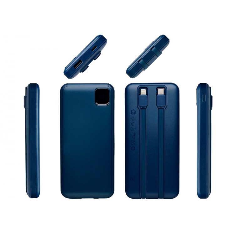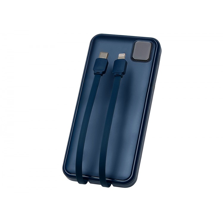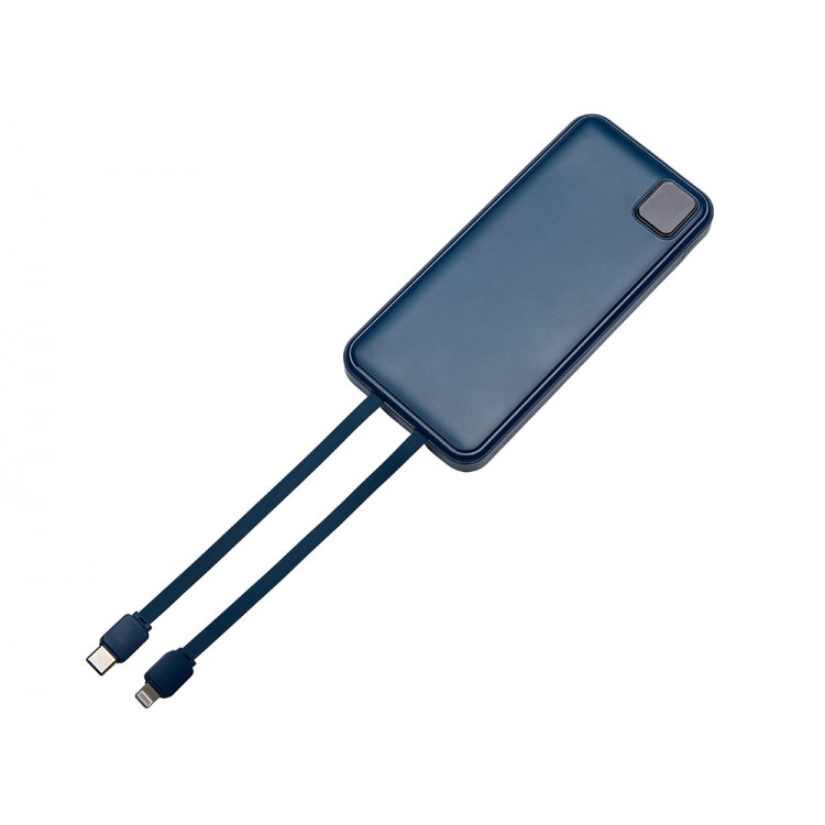 Внешний аккумулятор со встроенными кабелями Фрэйм, 10000мач, темно-синий