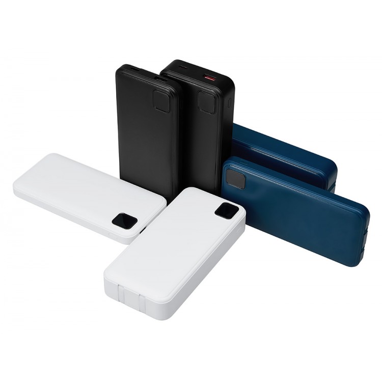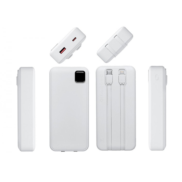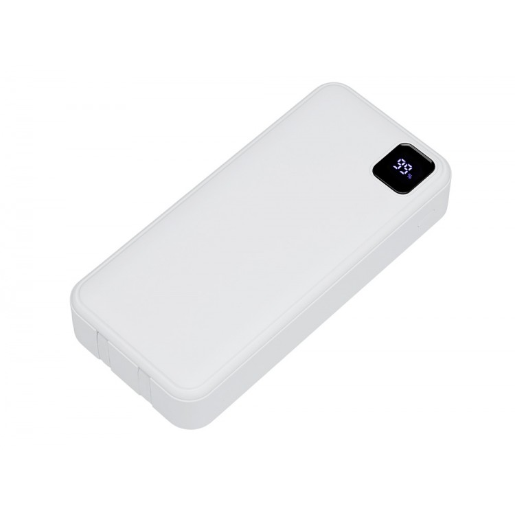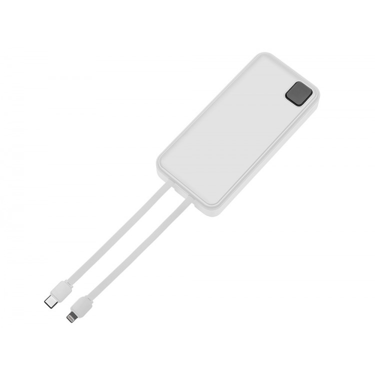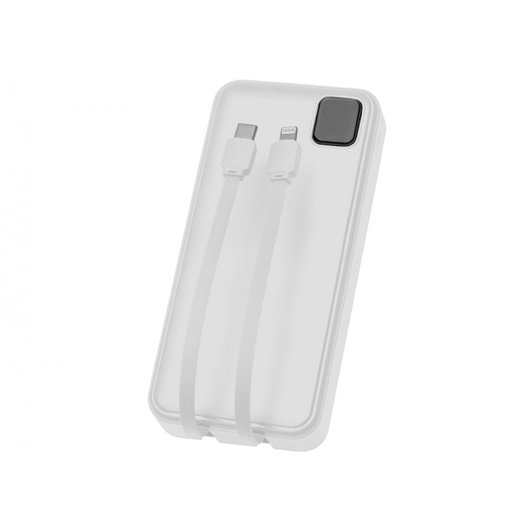 Внешний аккумулятор со встроенными кабелями Фрэйм Про, быстрая зарядка, 20000мач, белый