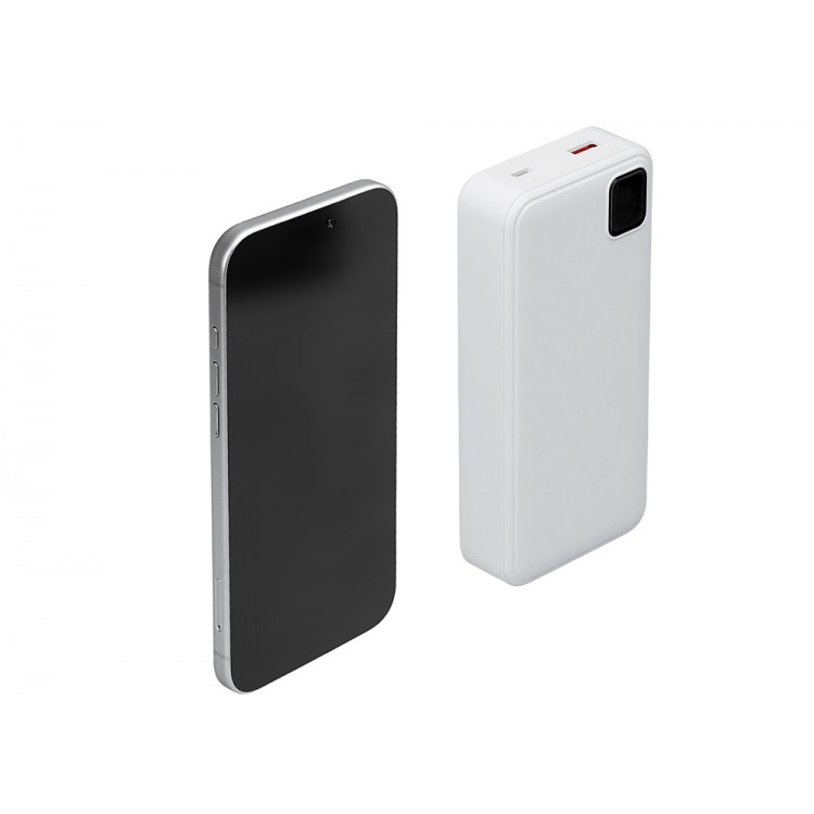Удобный внешний аккумулятор с функцией быстрой зарядки и встроенными кабелями USB-C (симметричный разъём USB тип С) и Lightning (разъём в ранних версиях iPhone) — ваш надежный партнер в путешествиях, на встречах и в повседневных задачах. Цифровой дисплей в реальном времени показывает точный остаток заряда и статус быстрой зарядки, а встроенные кабели и несколько разъемов позволяют заряжать до 4 устройств. Прочный корпус из переработанного АБС-пластика и емкость 20000 мАч обеспечивают зарядом все ваши устройства на долгий срок. Идеальный выбор для тех, кто ценит комфорт и функциональность в одном устройстве. Продуманная упаковка: для открытия просто потяните за язычок, и появится гаджет с нанесением.