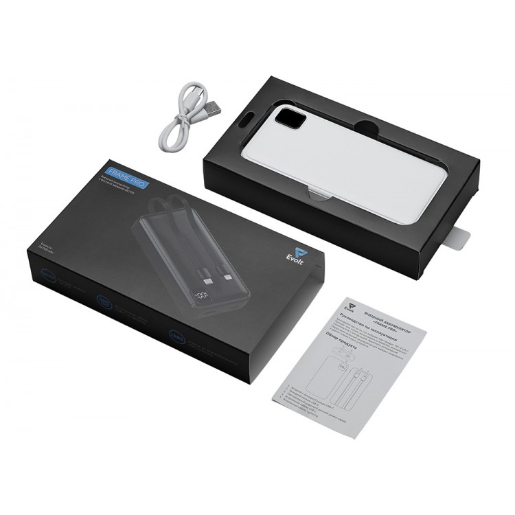 - Код товара: Внешний аккумулятор со встроенными кабелями Фрэйм Про, быстрая з