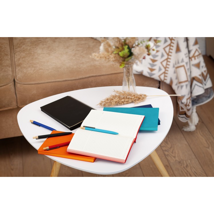Притягивает внимание, офисные принадлежности и желание что-нибудь срочно записать. Минималистичный в оформлении ежедневник «Аскона» представлен в ярких насыщенных цветах с цветным срезом. Гибкая обложка имеет фактуру натуральной кожи, её дополняет металлическая планка корешка. Блок из плотной тонированной бумаги в 256 страниц удобно использовать с чёрной лентой-ляссе в цвет среза ежедневника.
