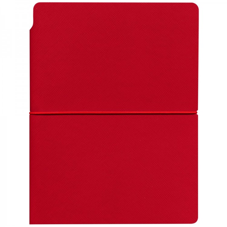 Ежедневник с гибкой обложкой выполнена из материала Nice Touch, красный и Latte, красный (внутренняя часть обложки), дополнен горизонтальной резинкой в цвет обложки. Внутри корешка — специальное место для крепления ручки размером до 15х1 см.