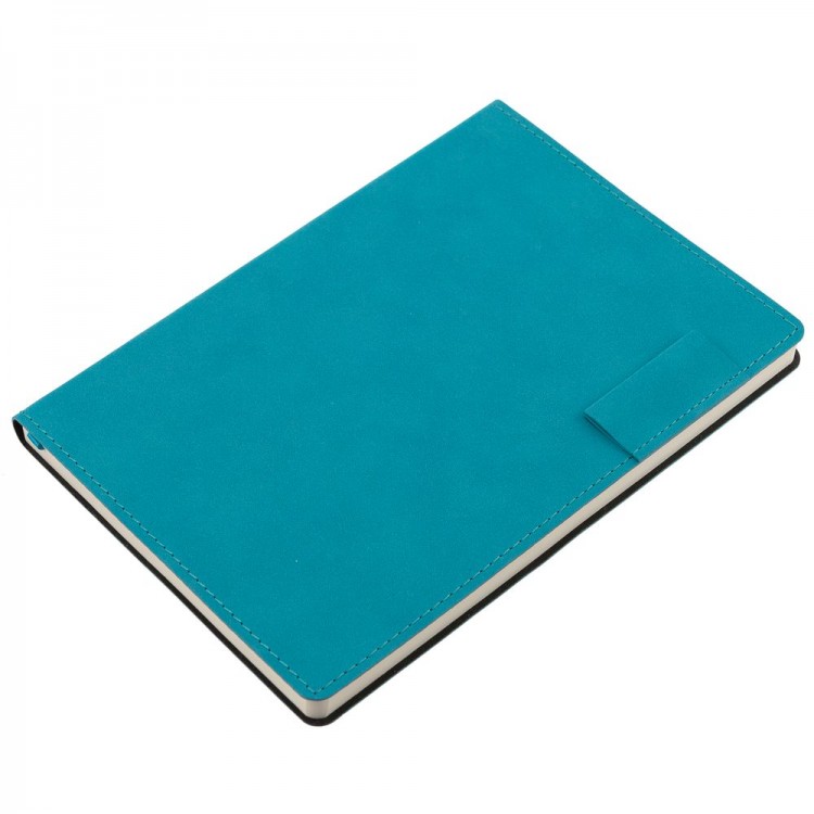 Ежедневник с гибкой обложкой, выполнен из материала Nubuck, цвет морской волны II, дополнен петлей-лейблом для ручки и ляссе в цвет материала.