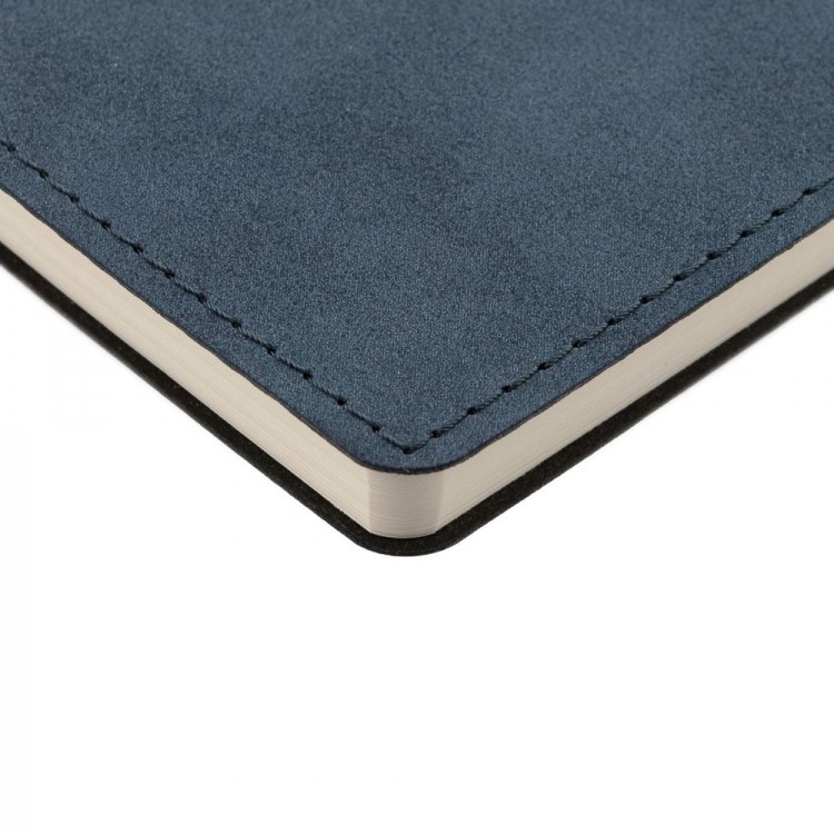 Ежедневник с гибкой обложкой, выполнен из материала Nubuck, темно-синий ХХ, дополнен петлей-лейблом для ручки и ляссе в цвет материала.