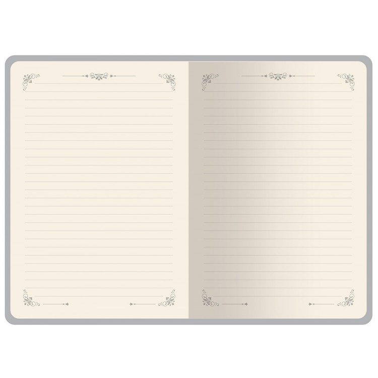 Недатированный ежедневник Royal формата А5 с твердой обложкой из искусственной кожи с имитацией нубука украшен художественным бронзовым и блинтовым тиснением. Внутри 256 страниц, выполненных из качественной бежевой бумаги в линейку плотностью 100 г/м². Два шелковых ляссе в цвет обреза блока и обложки облегчают навигацию по записям. Французский корешок дополнительно декорирован изящным бронзовым тиснением в виде виньеток. Скругленные углы обложки и блока подчеркивают стильный дизайн изделия, а блеск бронзового обреза дарит ежедневнику благородный и роскошный внешний вид.