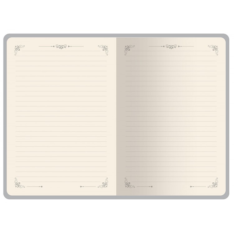 Недатированный ежедневник Royal формата А5 с твердой обложкой из искусственной кожи с имитацией нубука украшен художественным бронзовым и блинтовым тиснением. Внутри 256 страниц, выполненных из качественной бежевой бумаги в линейку плотностью 100 г/м². Два шелковых ляссе в цвет обреза блока и обложки облегчают навигацию по записям. Французский корешок дополнительно декорирован изящным бронзовым тиснением в виде виньеток. Скругленные углы обложки и блока подчеркивают стильный дизайн изделия, а блеск бронзового обреза дарит ежедневнику благородный и роскошный внешний вид.