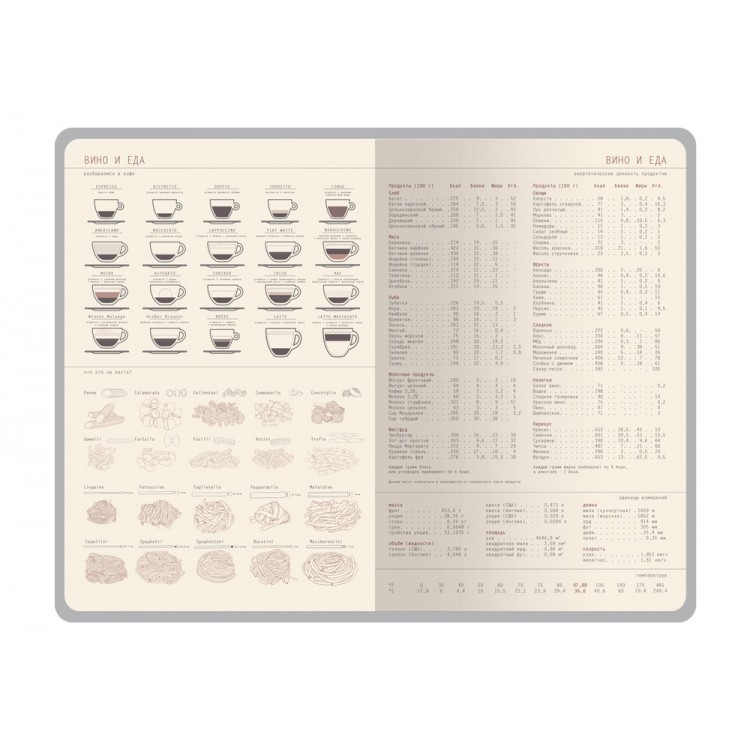 Ежедневник формата А5 имеет внутренний блок из 272 страниц. Блок изготовлен из бежевой бумаги плотностью 70 г/м2 и содержит: