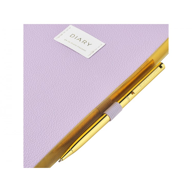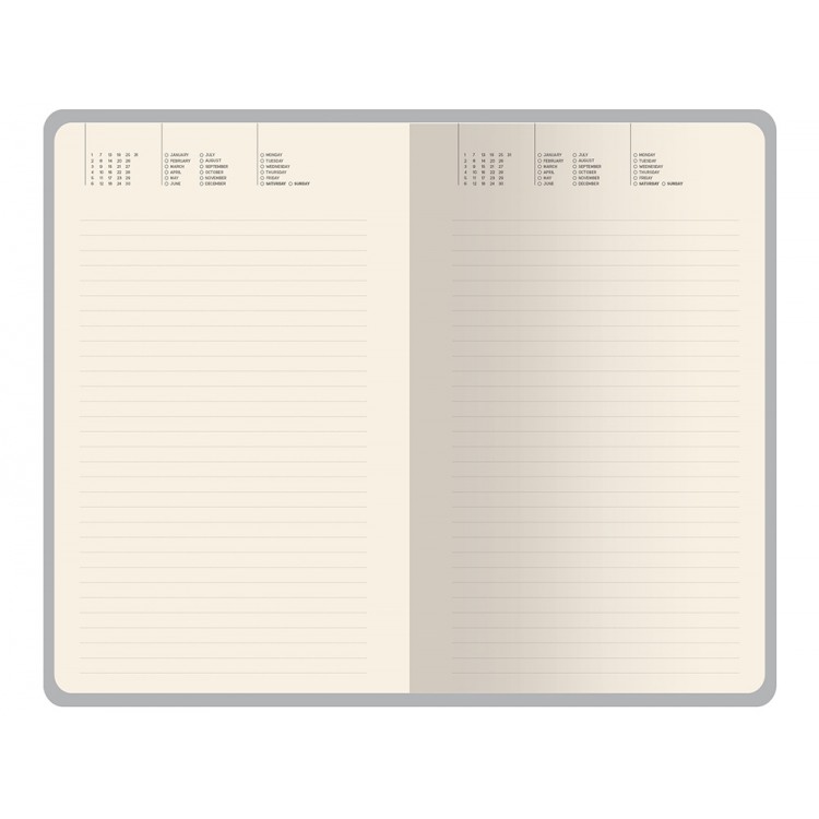 Внутри — недатированный блок формата А5 (125×200 мм) на бежевой бумаге 80 г/м². Книжный переплёт хорошо раскрывается, а скруглённые углы одновременно придают ежедневнику премиальный вид и защищают края при носке. Завершают детали ляссе в цвет обложки и петля для ручки — чтобы всё нужное было под рукой.