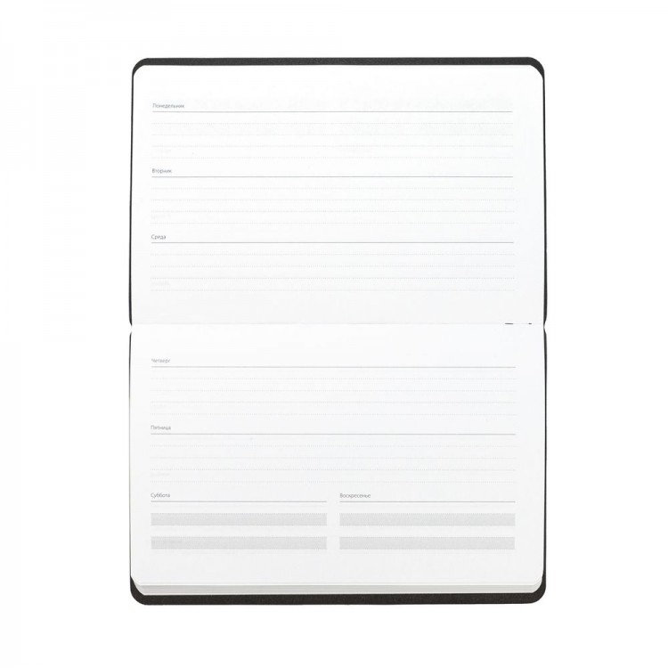 Еженедельник с гибкой обложкой, выполнен из материала Latte, черный АА.