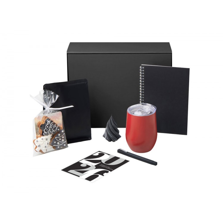 Подарочный набор c термокружкой, блокнотом, ручкой и свечкой, красный