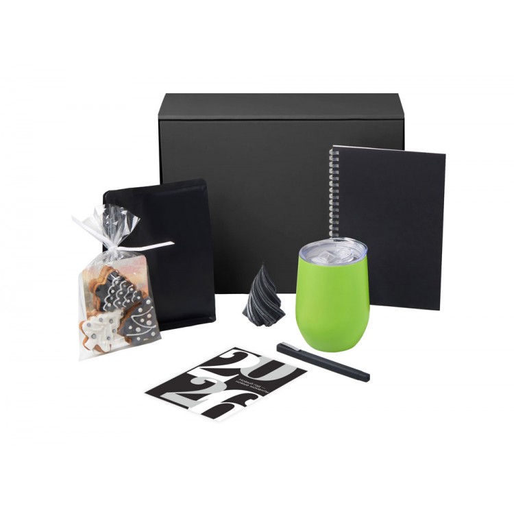 Подарочный набор c термокружкой, блокнотом, ручкой и свечкой, зеленое яблоко