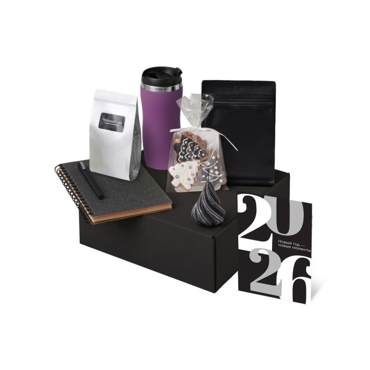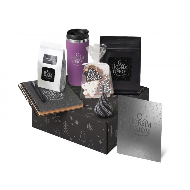 - Код товара: Подарочный набор c термокружкой, чаем, кофе и блокнотом, фиолето