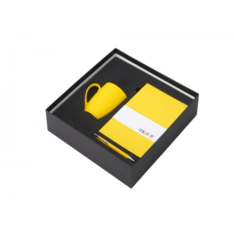 Подарочный набор с блокнотом С1, металлической ручкой и кружкой, желтый