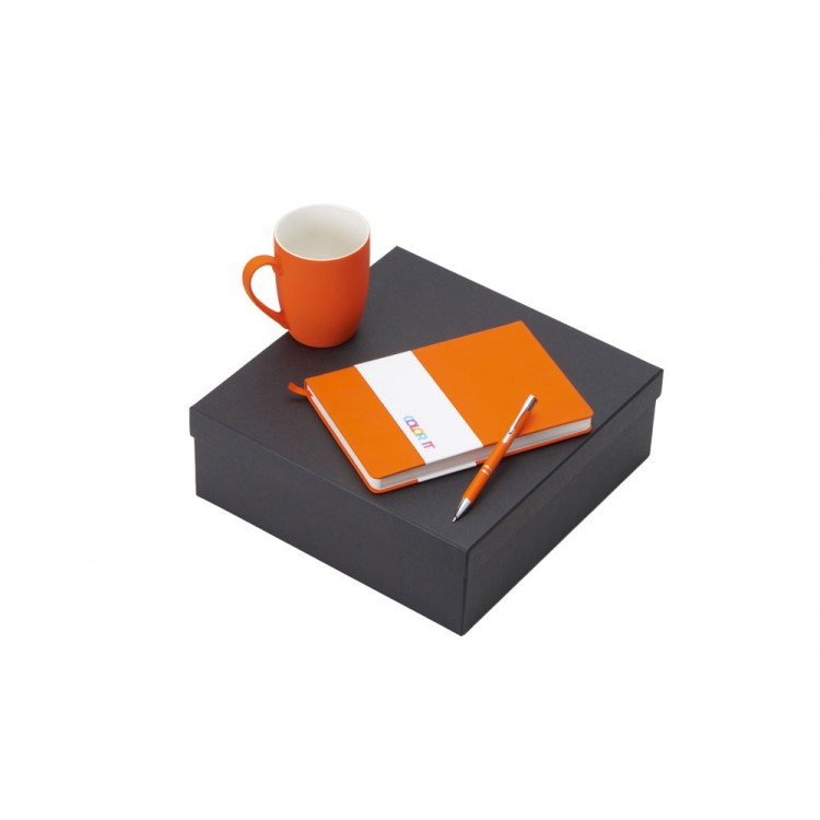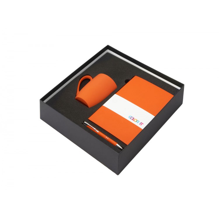 Подарочный набор с блокнотом С2, металлической ручкой и кружкой, оранжевый