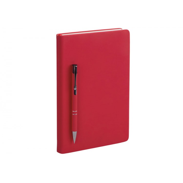 Бизнес-блокнот в твёрдой обложке с магнитным держателем для ручки имеет ляссе в тон обложки. Бумажный блок разлинован в линейку и выполнен из бумаги, полученной из древесины из специальных восполняемых лесных ресурсов, имеет сертификат FSC.