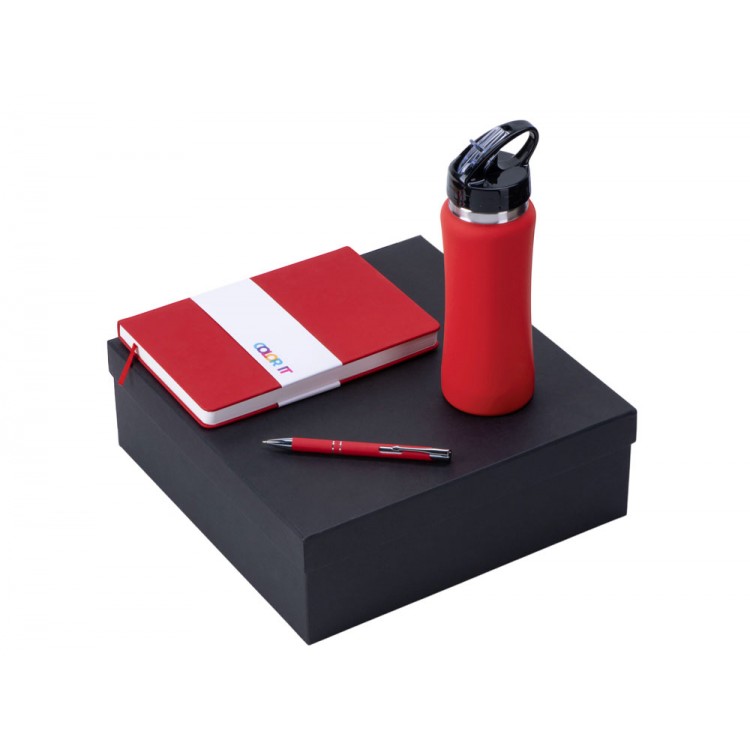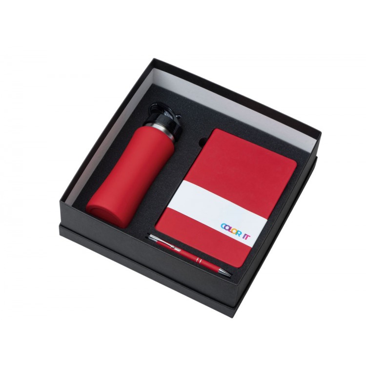 Подарочный набор с блокнотом С3, металлической ручкой и бутылкой для воды, красный