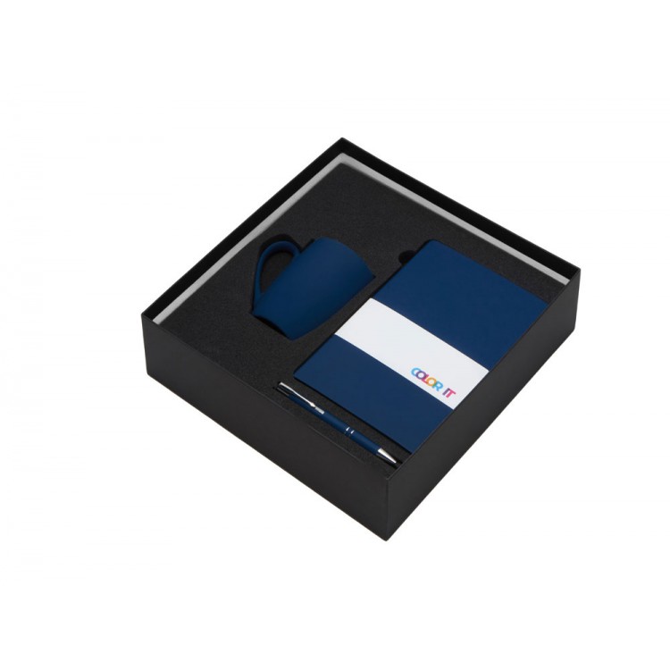 Подарочный набор с блокнотом С3, металлической ручкой и кружкой, темно-синий