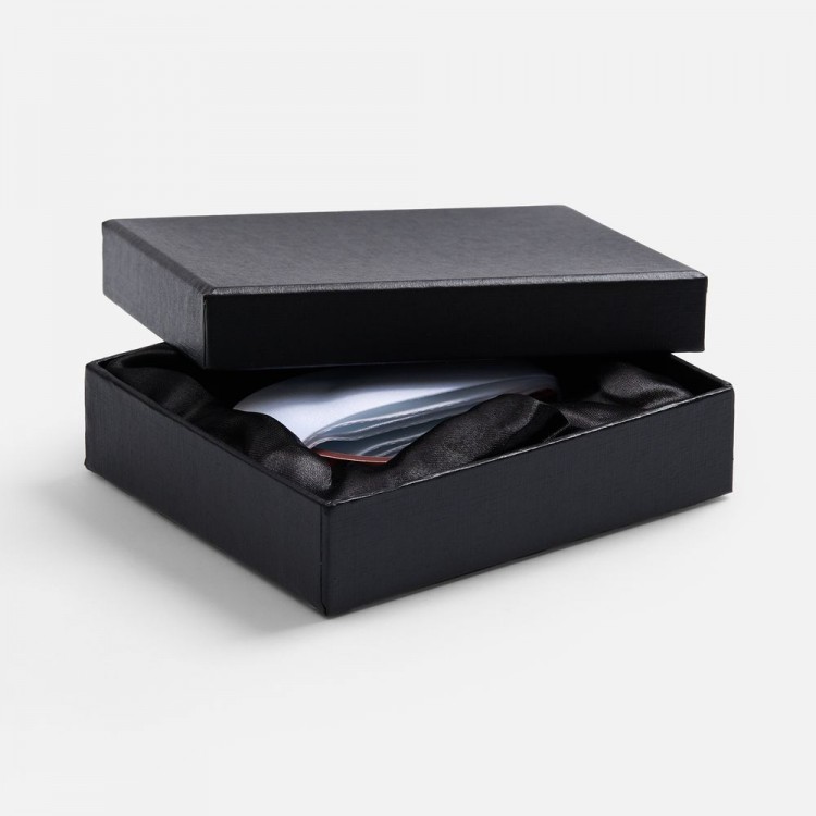 8,7х7,5x0,6 см; лента: 90х3 см; упаковка: 14х12х3,5 см
