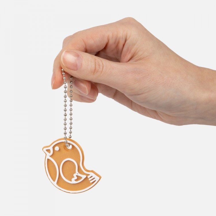 Мини-подвеска на фото изготовлена из PLA-пластика двух цветов: телесный 721С и белый.