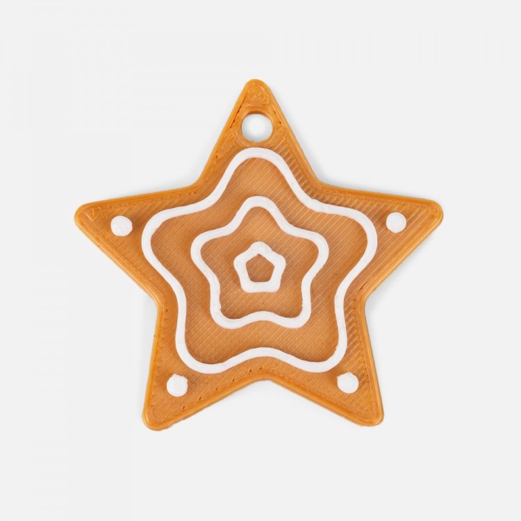 Мини-подвеска на фото изготовлена из PLA-пластика двух цветов: телесный 721С и белый.