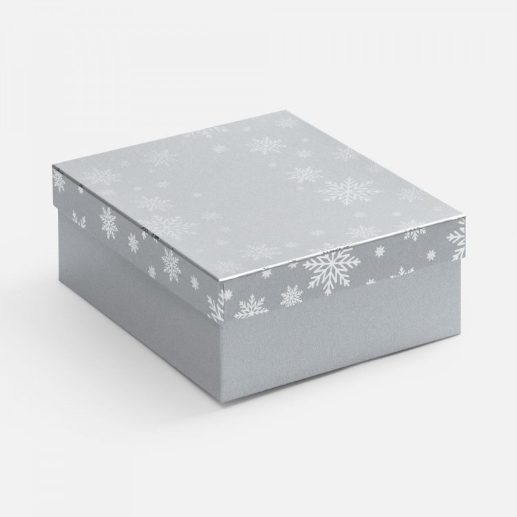 Коробка выполнена из переплетного картона толщиной 1,5 мм, кашированного бумагой TPG с тиснением серебристой фольгой.