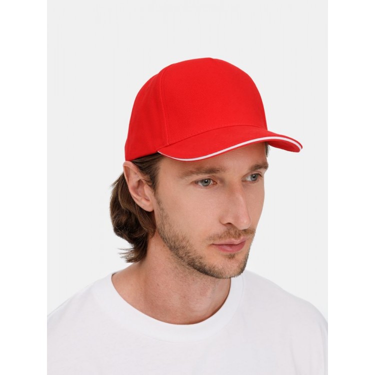 Бейсболка Classic 2.0, красная с белым кантом