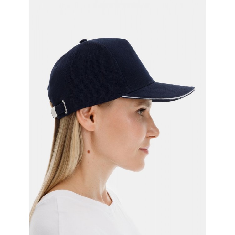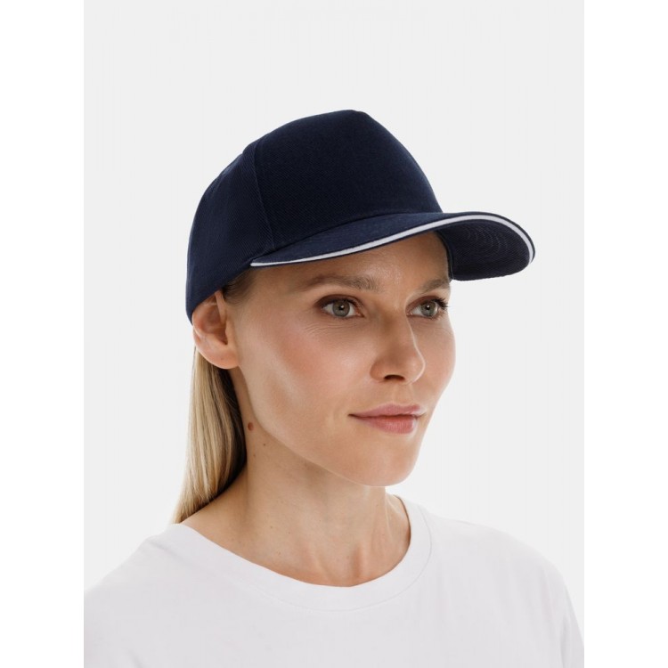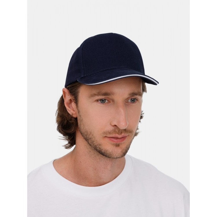 Бейсболка Classic 2.0, темно-синяя с белым кантом