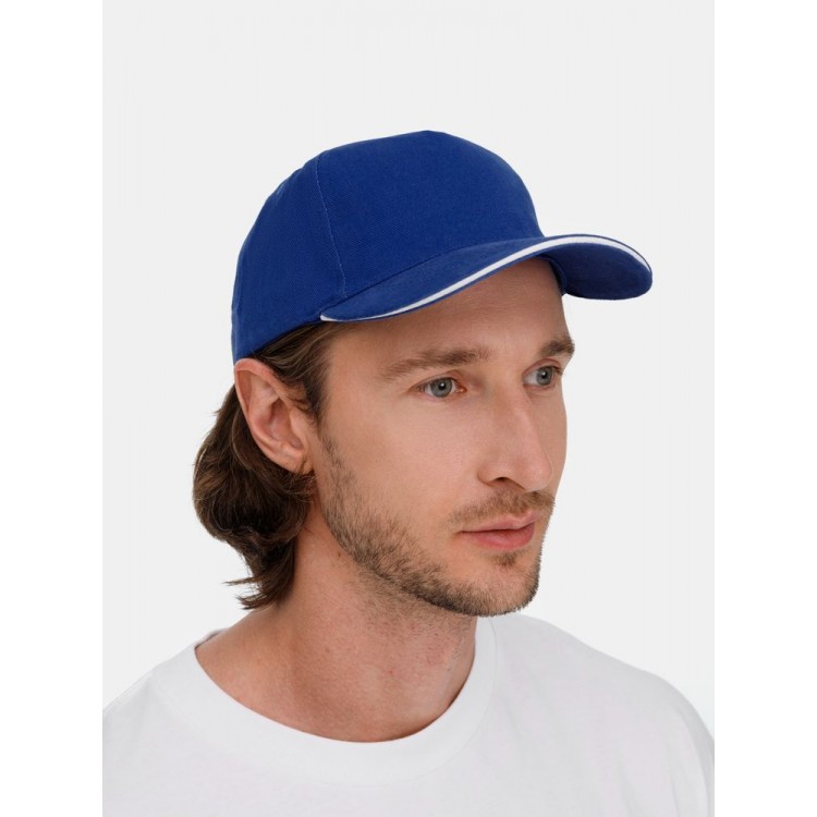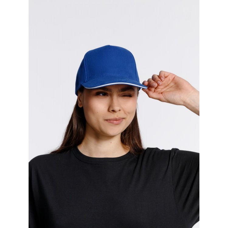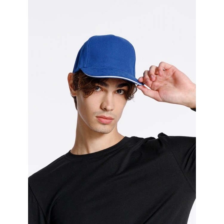 Бейсболка Classic 2.0, ярко-синяя с белым кантом
